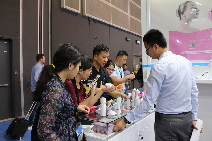 此次展會,公司推出京華旗下NIHO美妝產品,如JM-201智能潔面儀和JM-301智能美容鏟皮刀,這些新研發的產品得到大量客戶的青睞,前來咨詢和洽談的客戶絡繹不絕。