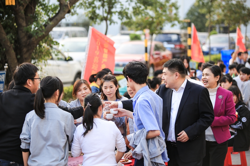 2019年1月11日下午,鳥語花香、陽光明媚。京華智能產業科枝園區彩旗獵獵,燈籠高掛,處處張燈結彩,一副熱鬧非凡、美輪美奐的景象。遠遠望去,京華大道上綿延幾百米,整齊地排列著160張鋪著大紅臺布的餐桌,猶如幾條巨大無比的彩帶在京華科技園區飛舞,場面頗為壯觀。