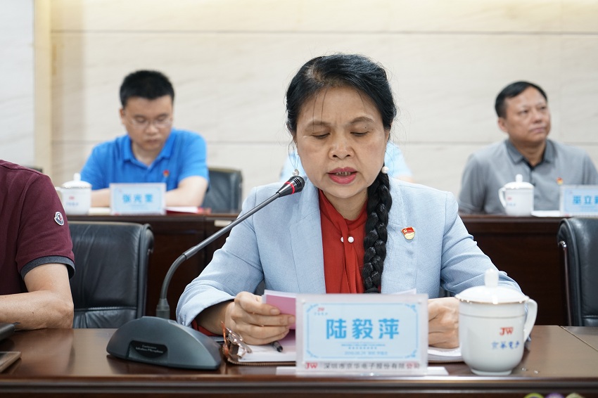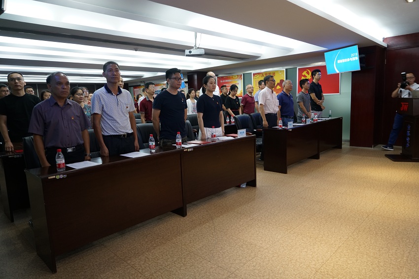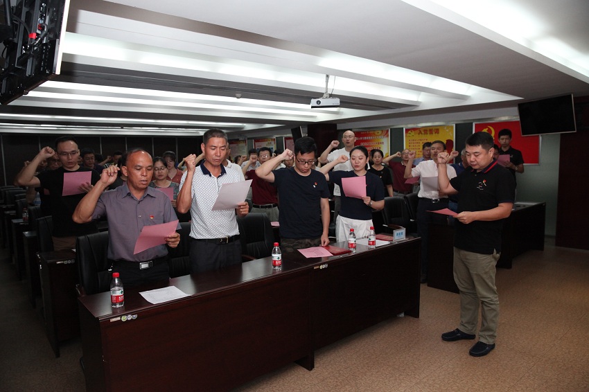 會議在莊嚴、神圣的《國歌》聲中開始。黨委委員、京華公司副總經理滕立軍宣讀“一先兩優”表彰文件;黨委書記陸毅萍、黨委副書記羅云水為獲獎人員頒獎;先進黨支部書記歐文剛、優秀黨員代表張藝涵發言;黨委委員、總會計師邢洋帶領全體黨員重溫入黨誓詞;王國慶總經理匯報公司上半年生產經營情況、梳理下半年工作計劃;京華信息公司總經理潘光宇分享5G概念介紹及商用領域的探討;黨委書記陸毅萍女士傳達中共中央關于在全黨范圍內開展”不忘初心,牢記使命”主題教育活動的精神。