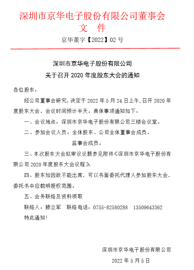 關(guān)于召開(kāi)2020年度股東大會(huì)的通知