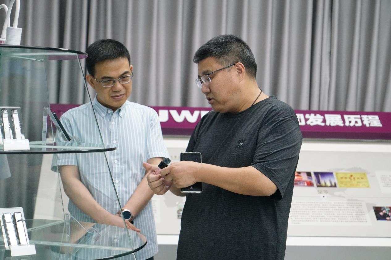隨后,羅云水陪同黃志勝一行參觀京華智能產業科技園、京華產品展覽廳。在產品展覽廳,京華信息公司總經理潘光宇向客人們詳細介紹了京華音視頻產品的發展與變遷,并重點介紹了遠程通訊設備、會務通等產品的研發及產銷情況。客人們對京華電子緊隨信息產業發展不斷推陳出新,為深圳電子信息產業的發展不斷貢獻智慧與力量表示十分贊賞。