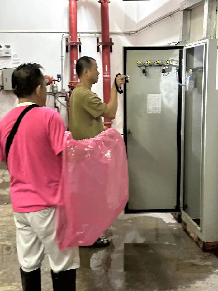 京華物業(yè)值班干部、工程部、保安人員徹夜未眠、堅(jiān)守崗位。值班干部在現(xiàn)場迅速決策、高效統(tǒng)籌防汛工作;工程部爭分奪秒排查電力系統(tǒng),全力維護(hù)電力設(shè)備的正常運(yùn)轉(zhuǎn),確保供電安全穩(wěn)定,也為排水設(shè)備的運(yùn)作提供堅(jiān)強(qiáng)保障;保安人員同樣承擔(dān)著繁重的排澇搶險(xiǎn)工作,扛沙袋、清洪澇,在防汛一線奮戰(zhàn)不止、忙碌不休。