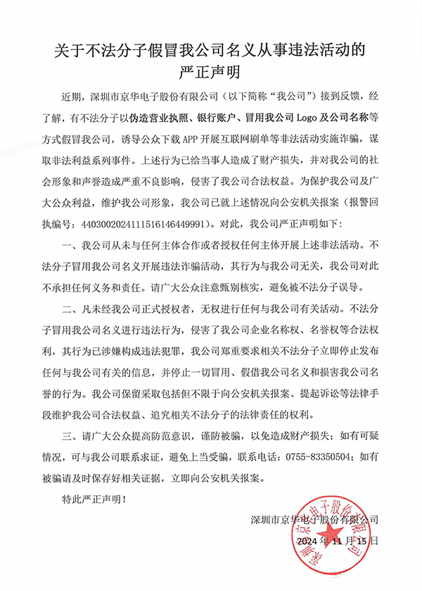 Copyright ? 2018 深圳市京華電子股份有限公司 All Rights Reserved.