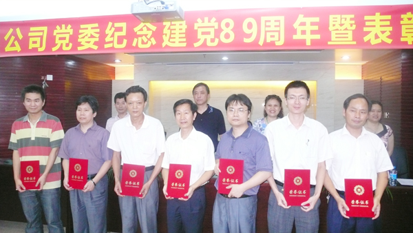 7月1日下午,京華公司在裝飾一新的三樓會議室隆重召開紀念中國共產黨建黨89周年暨表彰大會。公司領導田進、陸毅萍、胡佩芬、羅云水等出席會議,并在主席臺就坐。一批離退休老黨員、老干部、老職工也按要求參加了此次大會。會議由公司黨委副書記、紀委書記羅云水同志主持。