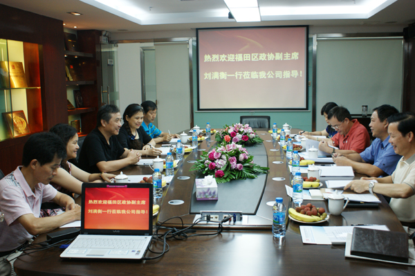 2010年7月19日上午,深圳市福田區政協副主席劉滿平衡一行五人,在華強北街道黨工委書記鄧芬的陪同下來我公司調研工作,并召開了座談會。